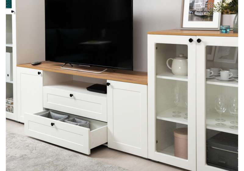Шкафы Опра 16.394.01 белый PE шагрень / дуб золотой craft.