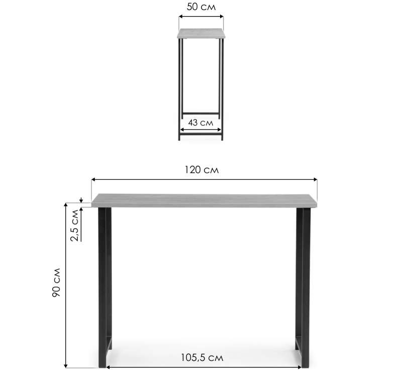 Обеденный стол Дилан Лофт 120х50х90 дуб вотан (50x90).