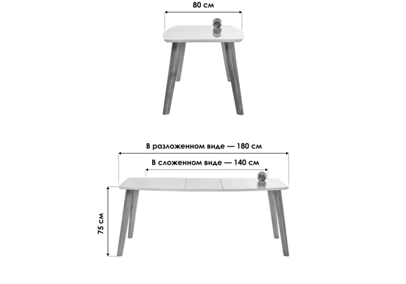 Длина стола в разложенном виде: 180 см.